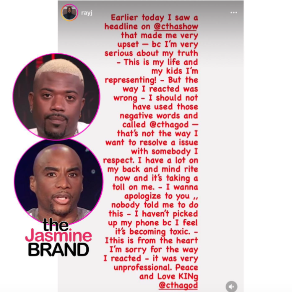 However Ray has been adamant he’s fighting for the truth to be revealed for the sake of he and his ex Princess Love‘s two young children. After his initial lashing out at Charlamagne, the singer later apologized. He wrote in a post: