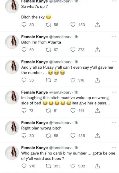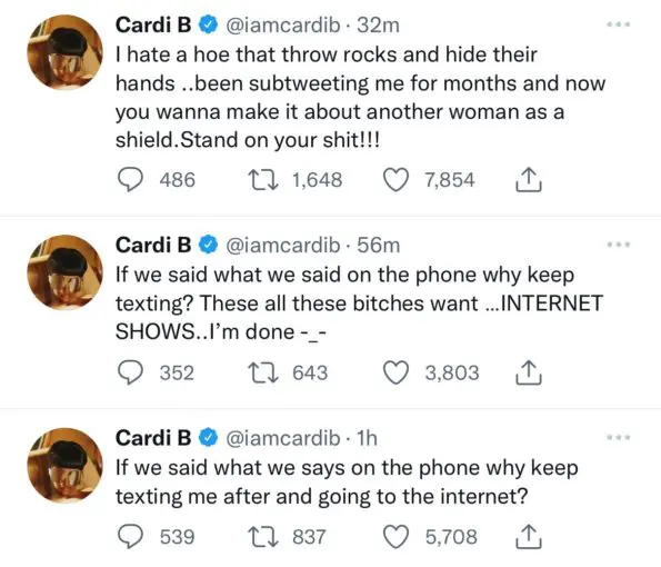 “Who gave this ho cardi b my number… gotta be one of y’all weird *ss h**s”