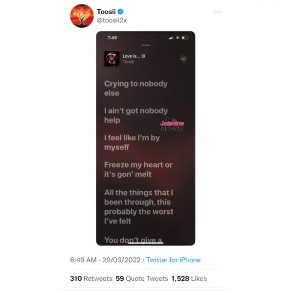 Yesterday (Sept. 28), Toosii (born Nau’Jour Grainger) lashed out on social media, seemingly blaming his fame for his infidelity and the state of his mental health. the “Love Is…” rapper shared a series of posts airing out his frustrations — including his mixed feelings towards the music business and his mental health struggles.
