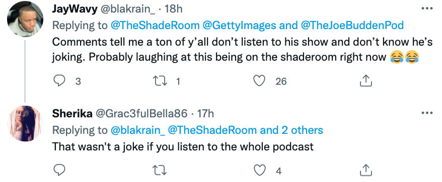 Seemingly due to the intense condemnation of Budden’s statement, the episode was replaced on the entertainers platforms. The father of two took to the instagram comments on The Shade Room writing: