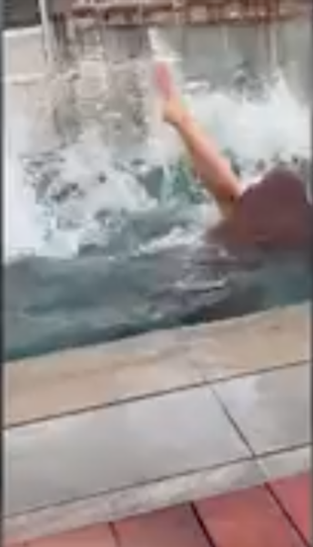 Though the woman is smiling initially, she later seems to get a bit uncomfortable. After Brown seemingly tries to remove and item of clothing from the women – to her rejection, he picks her up and throws her in the pool. Brown then proceeds to seemingly grope his genitals and lifts himself out of the water as she swims away, with the recording individual shouting “Oh my God!” before ending the video.