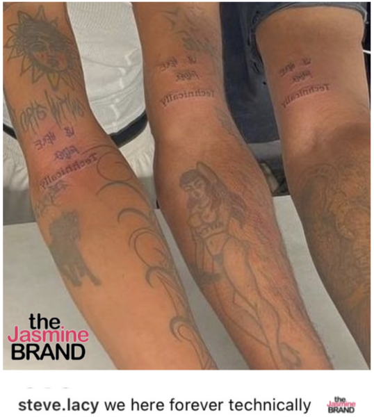 Let’s not forget about Uzi’s matching tattoo he received with Grammy-award winner Kanye West and musician Steve Lacy back in August. As previously reported, Steve Lacy announced what their tattoos said in a caption: