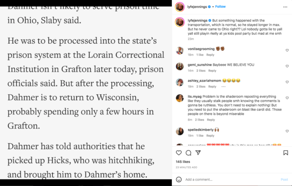 What are your thoughts on Lyfe Jennings singing for Jeffrey Dahmer while they were incarcerated? Share it with us in the comments below.