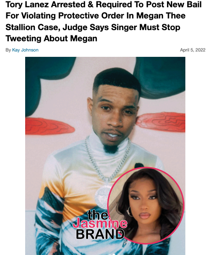In April of this year, Lanez was arrested for violating the protective order Megan has against him. A judge ruled him in contempt after he began tweeting about the situation. Among other things, Lanez claims having sexual relations with both Megan and Kelsey was the reason for his apology texts. He was released the same day after posting a $350k bail.