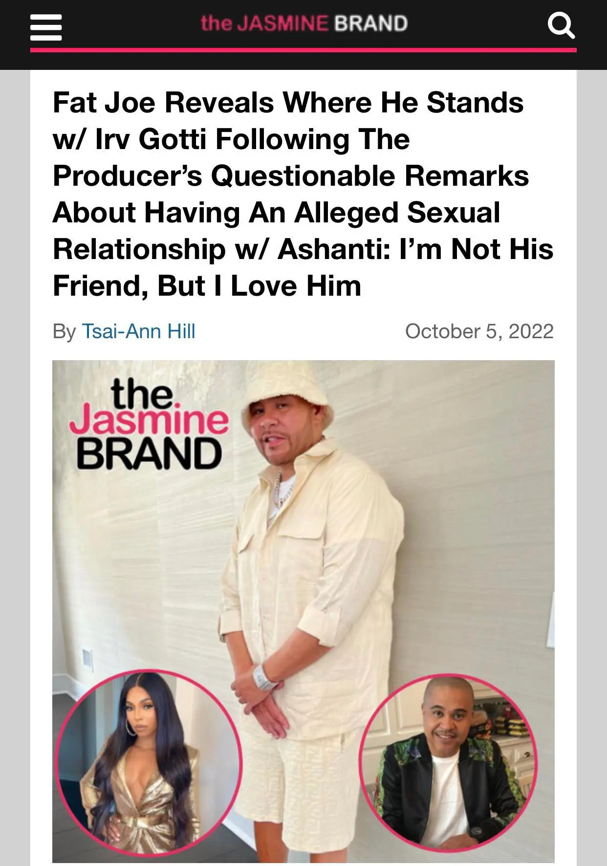 Fat Joe recently opened up about views on Irv Gotti while visiting “The Breakfast Club.” He explained that his disdain for Gotti’s remarks came from the respect he has for Ashanti and other female artists he looks at like family.