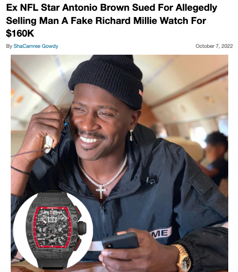 Reportedly, the 34-year-old former Tampa Bay Buccaneer is being sued after allegedly scamming a Tampa based entertainment company out of $500k. The company’s owner already hit the pro athlete with a suit after allegedly selling him a fake Richard Millie watch earlier this month. Now, reports have learned that Antonio brown is also being sued for defamation and breach of the “exclusive artist agreement” contract he signed with Secure the Bag Entertainment back in July.