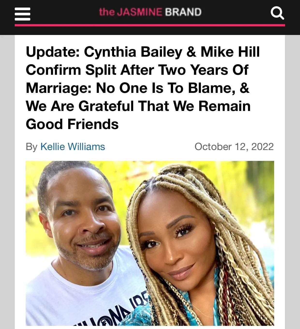 On Tuesday (Oct. 11), theJasmineBRAND exclusively reported that Cynthia Bailey and her husband, Mike Hill, had unfortunately pulled the plug on their marriage. Close sources revealed that they’d been apart for a while and the divorce was already underway.