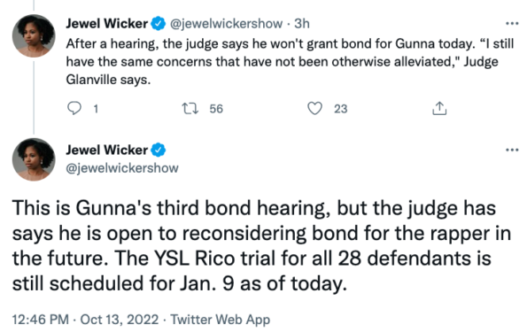 Reportedly, the judge added that he’s open to hearing bond appeals from the musician in the future. Gunna, Young Thug, and 28 others are being accused of a number of gang-related crimes. Atlanta DA Fani Willis previously stated they have evidence to support the RICO charges and plan to use lyrics from the rappers’ music to support said evidence.