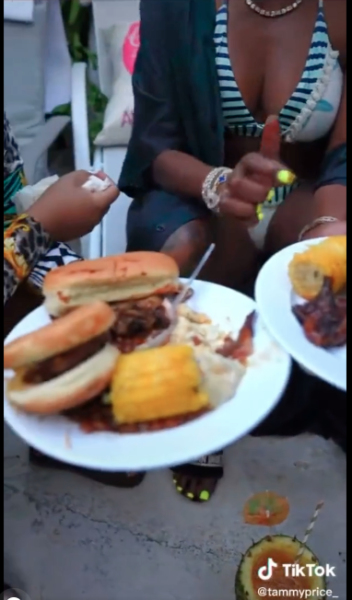 “Then to compare it to royalty, Stormy….what you give on a daily is more consistent with hood rat than her plate. You had green finger nails, you was licking BBQ sauce and God knows whatever else from up under your nails. All while digging around in this lady plate…y’all was eating off of white dixie plates at an event that people paid thousands of dollars to attend that you was responsible for. And then on top of that, shrimp are roaches of the sea and there is literally no nutritional value in corn – so how was your plate or your vibrations any higher than hers. While yo’ legs was cocked open on the chair.”