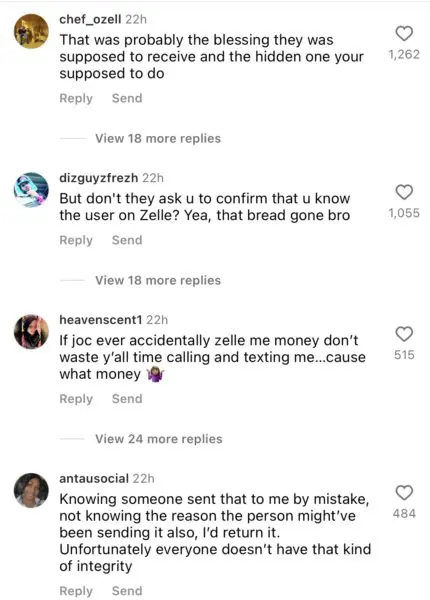 “Hi can you please return the $1,800 that I mistakenly sent to your account via Zelle. I don’t know you nor do you know me…Please do the right thing…God has a bigger blessing for you.”