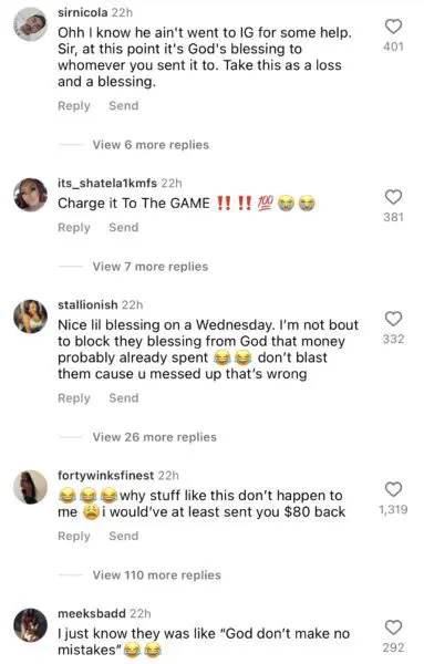 “Ohh I know he ain’t went to IG for some help. Sir, at this point it’s God’s blessing to whomever you sent it to. Take this as a loss and a blessing.”