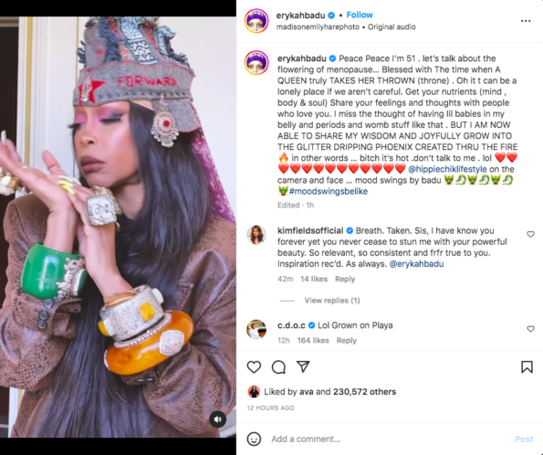 What are your thoughts on Erykah Badu sharing her menopause journey? Share it with us in the comments below.