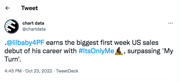 Lil Baby Earns 3rd Consecutive #1 On Billboard 200 Chart w/ Latest Album ‘It’s Only Me,’ Bringing In The Largest Amount Of First-Week U.S. Sales Of His Career