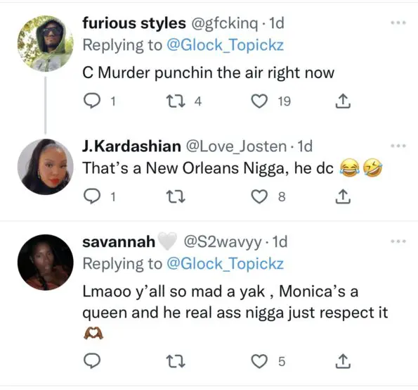 “Now y’all know know Monica ain’t leaving c murder…find y’all somebody to play with.”