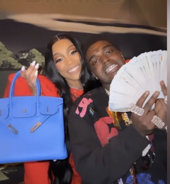 She later shared a selfie of them together as she held a blue Birkin bag while Kodak Black held a large amount of cash in his hand. She captioned the post,