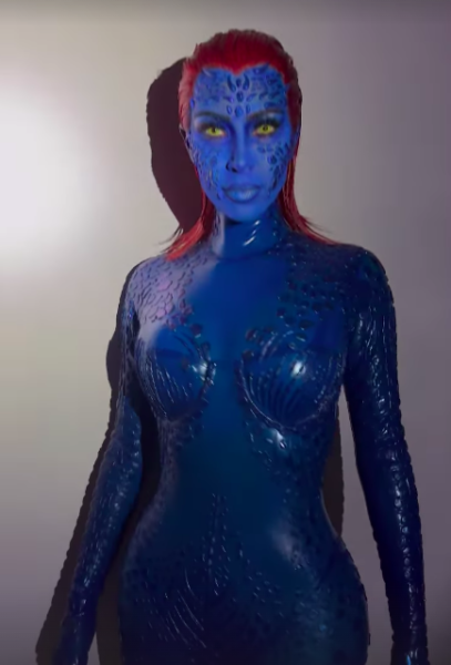 Kim Kardashian didn’t leave all the fun to her little ones! The mother-of-four dressed up as a sexy Mystique from the world of Marvel.
