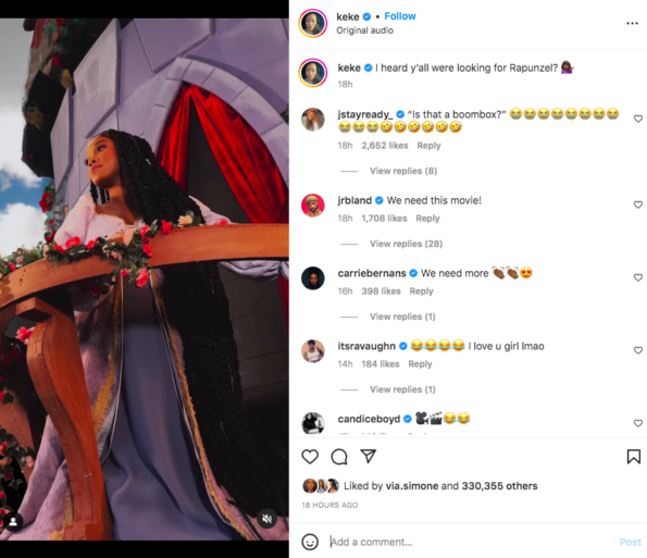 Keke Palmer lived out every little girl’s fantasy and dressed up as a Disney princess. The ‘Nope’ actress shared video footage to her IG page of herself as Rapunzel.