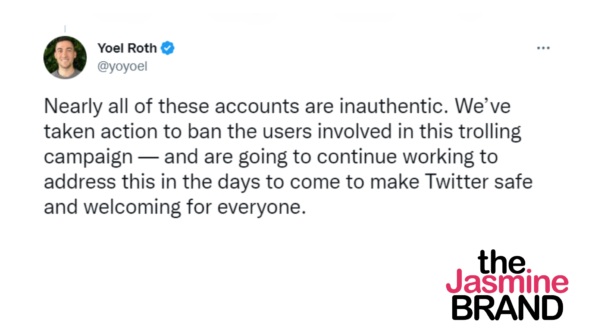 “Nearly all of these accounts are inauthentic. We’ve taken action to ban the users involved in this trolling campaign — and are going to continue working to address this in the days to come to make Twitter safe and welcoming for everyone.”