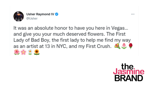 While it seems their paths may never cross in the romance department, it is great to see Usher give his long-time friend her flowers. It was something that she also appreciated. In a Tweet, the ‘Soon As I Get Home’ singer shared,