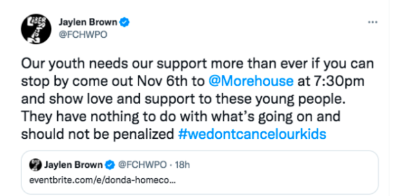 “The basketball tournament scheduled for November 6th at Forbes Arena, featuring the Donda Doves and The Skill Factory, has been canceled. We welcome the students and families to visit the campus and encourage them to learn more about how Morehouse singularly prepares men of color for lives of leadership and service by empowering young men who are trustworthy and hold themselves and each other accountable to act with compassion, honesty, and integrity as they build community with civility.”