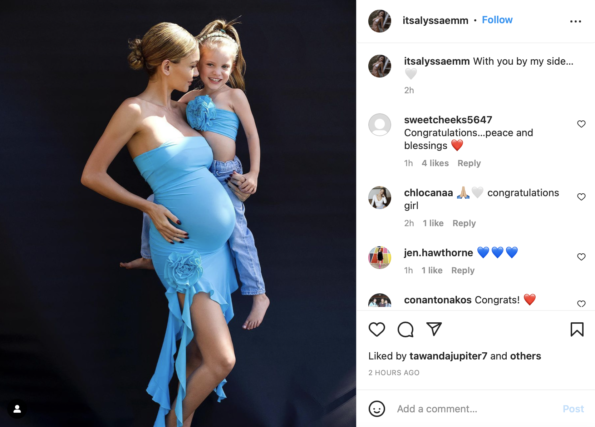 Today (Oct. 26) Alyssa Scott took to Instagram to share a photo of her growing baby bump while holding her daughter, Zeela. The mother-daughter-duo looked beautiful as they posed in front of a black background and rocked similar blue outfits. Alyssa Scott captioned her pregnancy reveal: