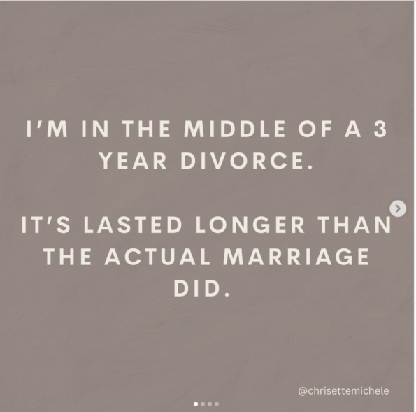 “I’m in the middle of a 3 year divorce. It’s lasted longer than the actual marriage did.”