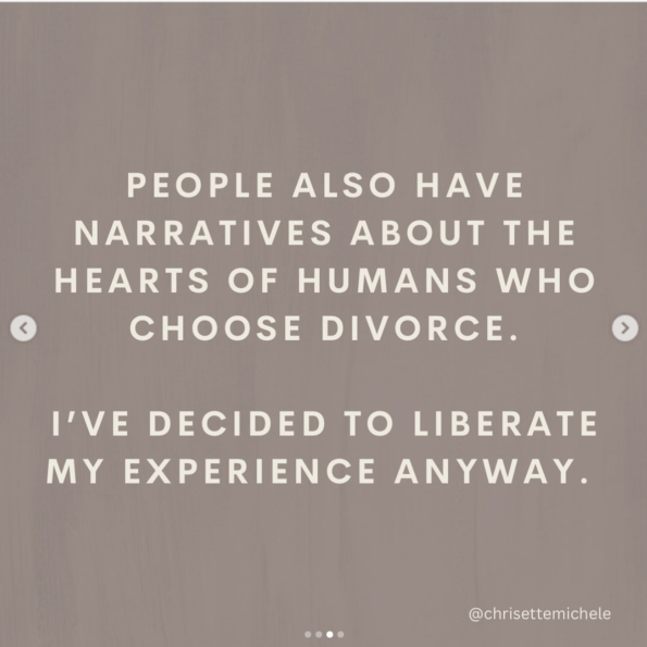 “People also have narratives about the hearts of humans who choose divorce. I’ve decided to liberate my experience anyway.”