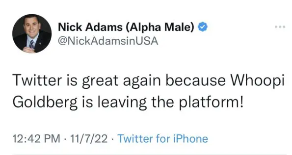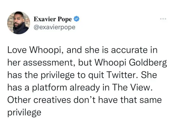 “I have never seen a Tweet by Whoopi Goldberg. I honestly didn’t know she had an account here.”