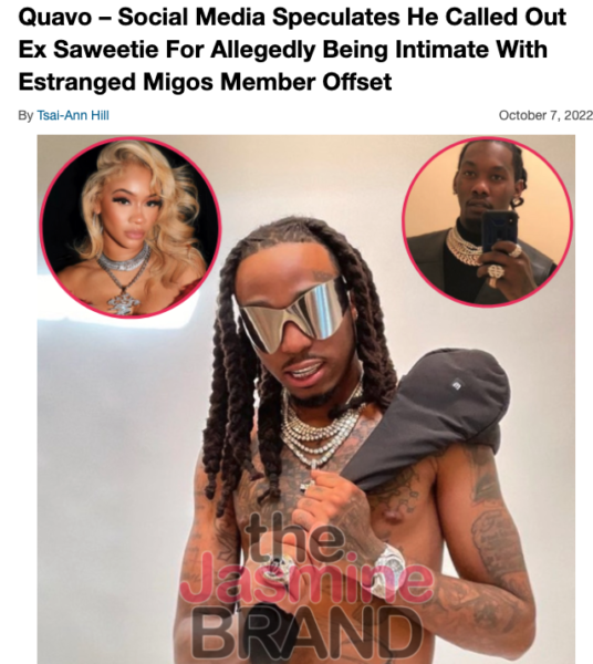 Following the episode, the Migos head huncho seemingly responded in a song. Quavo insinuated that Saweetie had slept with one of his “dawgs,” rapping: