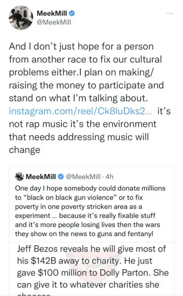 In a follow-up tweet, Meek Mill, 35, added,
