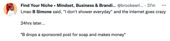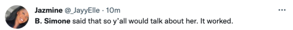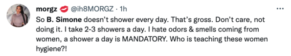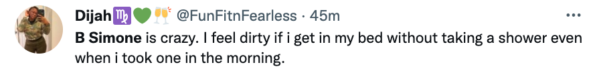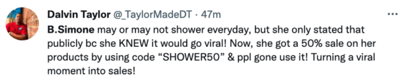 Many users believe the entertainer made the comment as a way to have a viral moment and get people to discuss her. Whether or not this theory is accurate, Simone certainly took advantage of the situation. The entertainer went live in the shower following the post blowing up, marketing a 50% sale of her beauty line B. Simone Beauty. Responding to the backlash, the comedian sang lyrics from Outkast’s “So Fresh So Clean,” and stated: