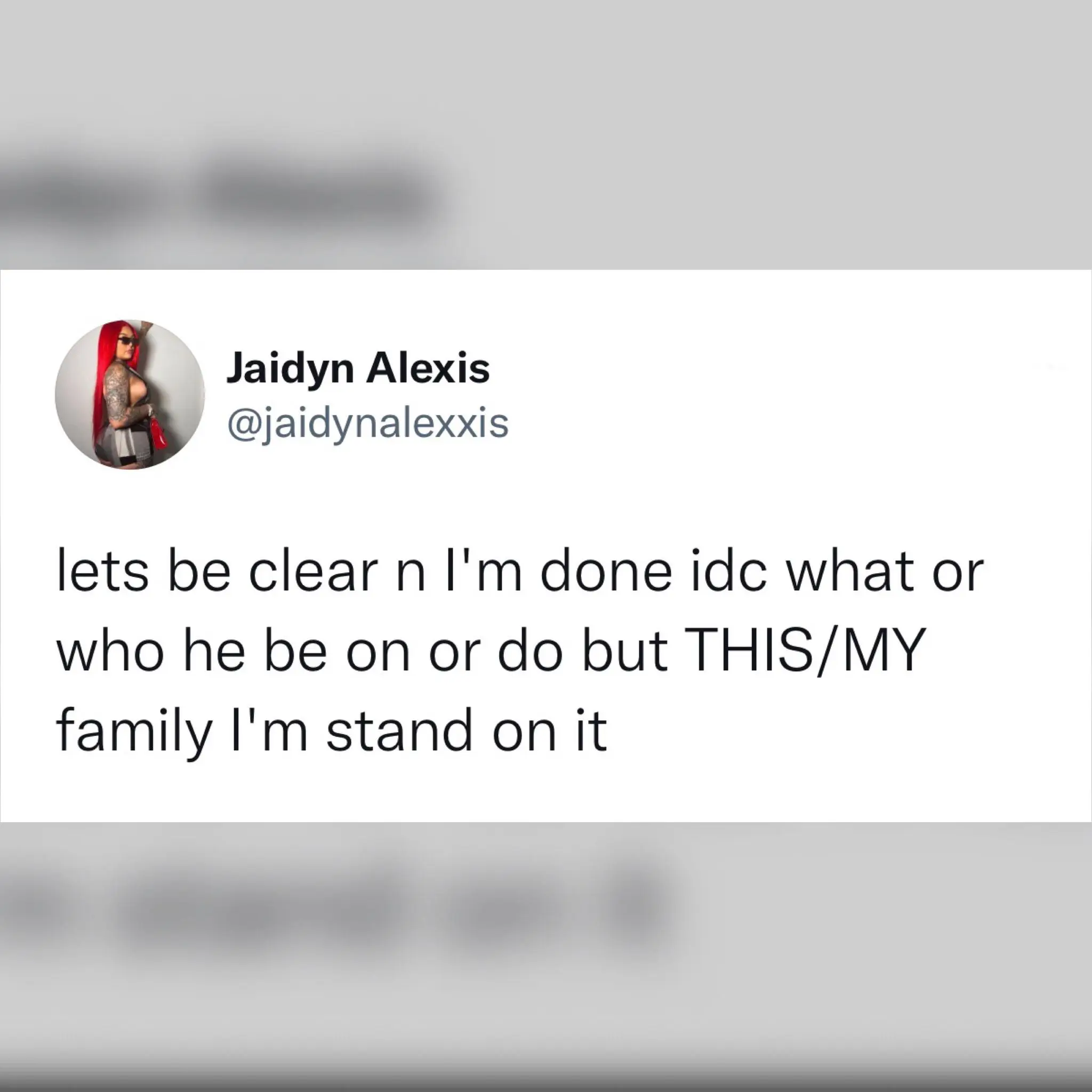 “Let’s be clear n I’m done idc what or who he be on or do but THIS/MY family I’m stand on it.”