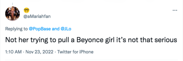 It’s unclear why J.Lo has gone dark on the internet but some speculate she could be gearing up to release new music. Whatever the reason, social media users couldn’t help but notice that her latest actions resemble the rollout of Beyoncé’s “Renaissance” project. One user wrote,