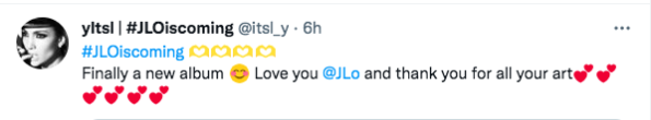 “Finally a new album Love you [J.Lo] and thank you for all your art”