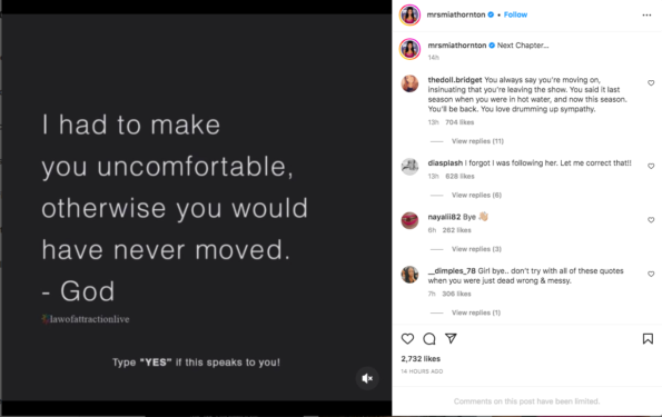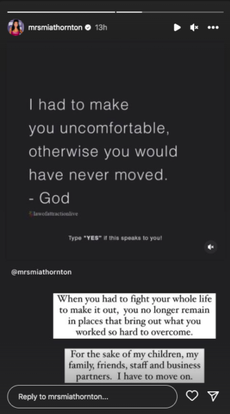 “While I was committed to drama and entertainment I must do what’s best for [my] brand & partners. Much love, Mia.”