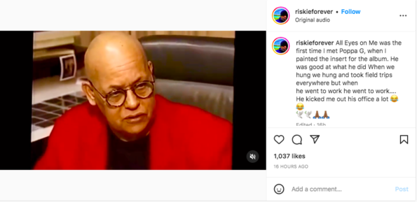 “All Eyes on Me was the first time I met Poppa G, when I painted the insert for the album. He was good at what he did When we hung we hung and took field trips everywhere but when he went to work he went to work….He kicked me out his office a lot.”