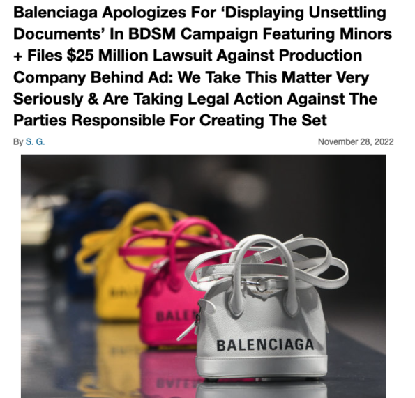 As previously reported, luxury fashion brand Balenciaga recently came under fire for one of their campaign photoshoots. Reportedly, the retail giant photographed minors holding teddy bears dressed in BDSM bondage. In addition, the campaign featured a copy of the 2008 U.S. Supreme Court decision that maintained federal laws against child pornography. Photos from the campaign have since been pulled, and the company claims they plan to take “legal action” against the individuals responsible.