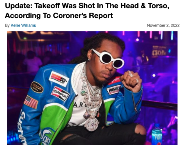 “There was a lucrative dice game that went on at the event. There was an argument that happened afterwards outside the bowling alley, which led to the shooting…I can tell you that Takeoff was not involved in playing in the dice game, he was not involved in the argument that happened outside. He was not armed.”