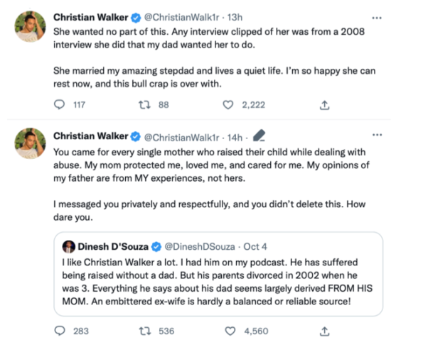 Christian continued and blasted author Dinesh D’Souza for publicly labeling his mom as “bitter”:
