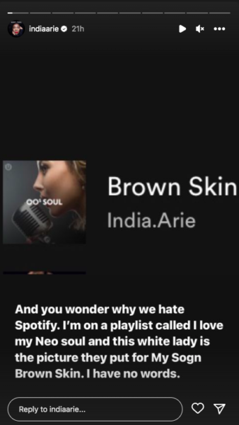 The Neo-Soul singer recently took to her Instagram Story to inform fans that the streaming giant used a photo of a white woman as the cover art for a neo-soul playlist that she is featured on. In a string of posts, India Arie fired off on Spotify and shared her frustrations.