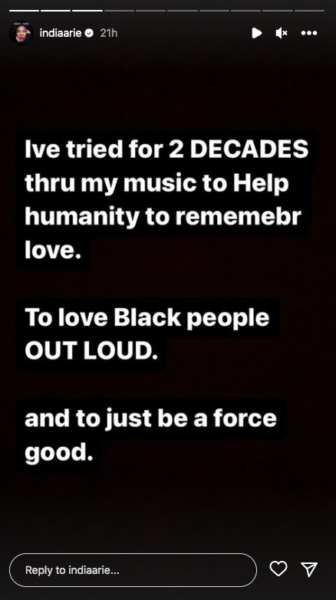 “I’ve tried for 2 DECADES thru my music to Help humanity to remember love. To love Black people OUT LOUD. And to just be a force [of] good.”