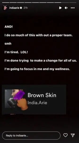 “I do so much of this [without] a proper team. smh. I’m tired. LOL! I’m done trying to male a change for all of us. I’m going to focus [on] me and my wellness.”
