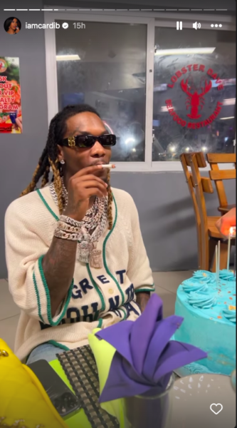 In a video shared via Cardi B’s IG Story, the “Happy Birthday” song by Stevie Wonder played in the background as Offset smoked and enjoyed a feast of massive lobsters and other delicacies at the Lobster Dave Seafood Restaurant and Sports Bar in Ocho Rios on Wednesday (Dec. 13) night.