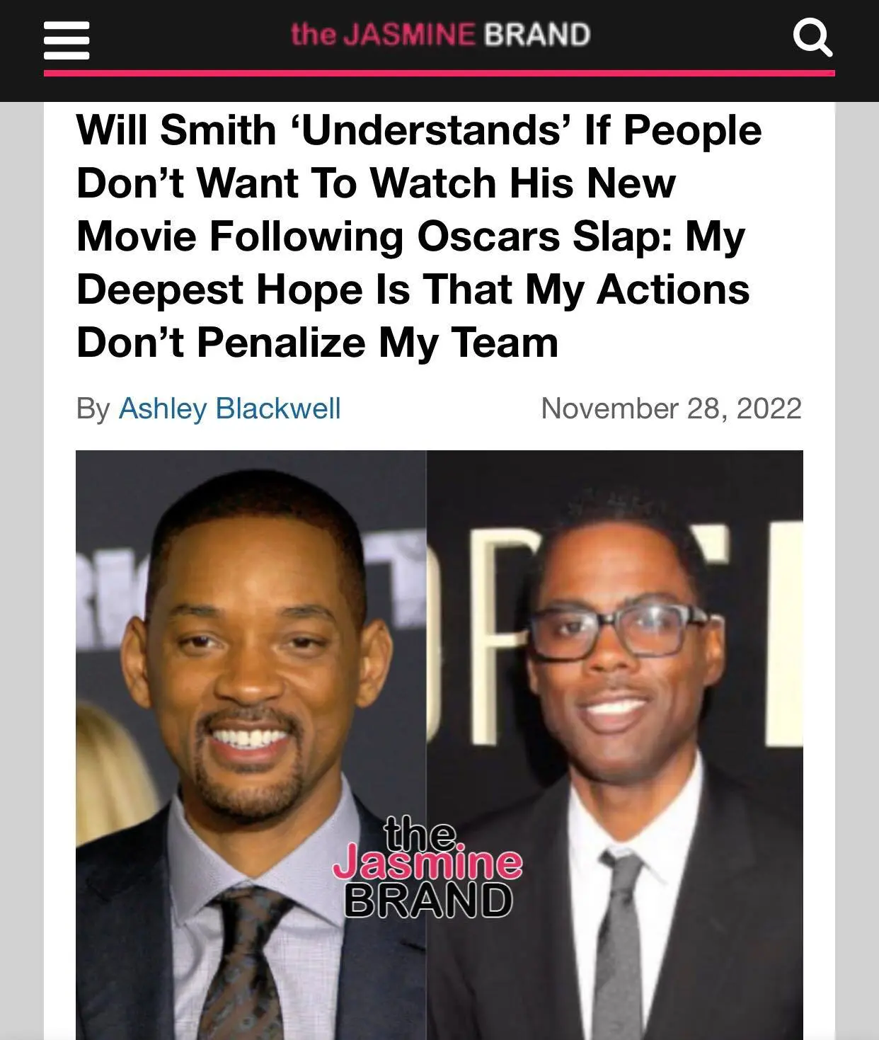 “The thing is, they both needed the love. They both needed the love. You know, it’s just like brothers fighting and you don’t want to see your brothers fighting and stuff. You know, but Chris Rock didn’t deserve that at all. You know, like I said, it’s just an unfortunate situation, and we gotta be more conscious of how we treat each other and the respect that we have for each other as Black men and Black women.”