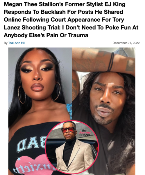 Hairstylist EJ King also took the stand as a defense witness and testified that his client, Megan Thee Stallion, becomes a different person when drinking. The hairdresser faced backlash for seemingly making light of the situation. However, King claims he only showed up to share his truth, and denies making fun of Megan’s trauma.