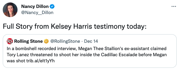 The “Savage” artist’s ex-BFF Kelsey Nicole Harris, 27, was present during the shooting. Despite previously telling prosecutors Lanez did in fact shoot Megan, Harris plead the 5th during the trial. Reportedly, the social media influencer was granted immunity and claimed not to recall many things from that evening, nor many things she previously told prosecutors.