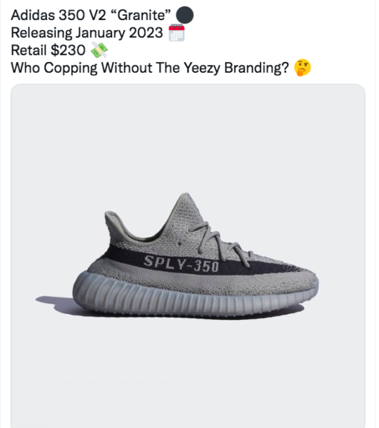 New reports allege that Adidas had no choice but to rebrand the Yeezys because they’re sitting on an inventory that amounts to around $530 million. Allegedly, Adidas is looking to sell the mountain of Yeezys in order to avoid an even bigger financial loss. It was previously reported that the termination of the partnership with Kanye West cost them more than $250 million in profit and $500 million in lost sales. Reportedly, since at least 2019, Yeezys have remained a constant product in the Adidas wheelhouse. A date for Adidas’ first unofficial Yeezy release has been set for the top of 2023.