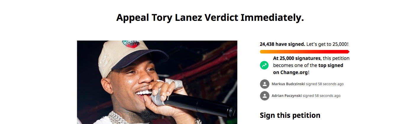 Fans are attempting to use their power to appeal Tory Lanez’s guilty verdict.