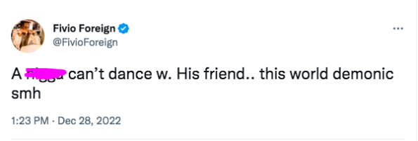 “A n*gg* can’t dance w. His friend.. this world demonic”