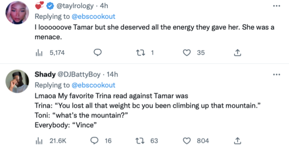 “I loooooove Tamar but she deserved all the energy they gave her. She was a menace.”